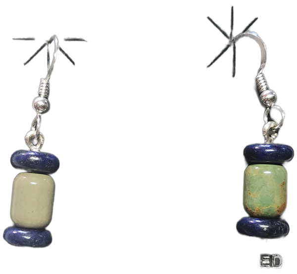 This Solid Sterling Silver Native Southwest earrings features a beautiful turquoise stone as the main focal point, with Lapis. The earrings are handcrafted with eco friendly solid sterling silver with natural gemstones in a Southwestern style, making it a unique and ethnic-inspired piece of jewelry. The jewelry is created using a plasma welder, which ensures a secure weld. The combination of natural turquoise stone, silver metal accents give these earrings a Western and Bohemian flair, perfect for adding a touch of ethnic-inspired style to any outfit.