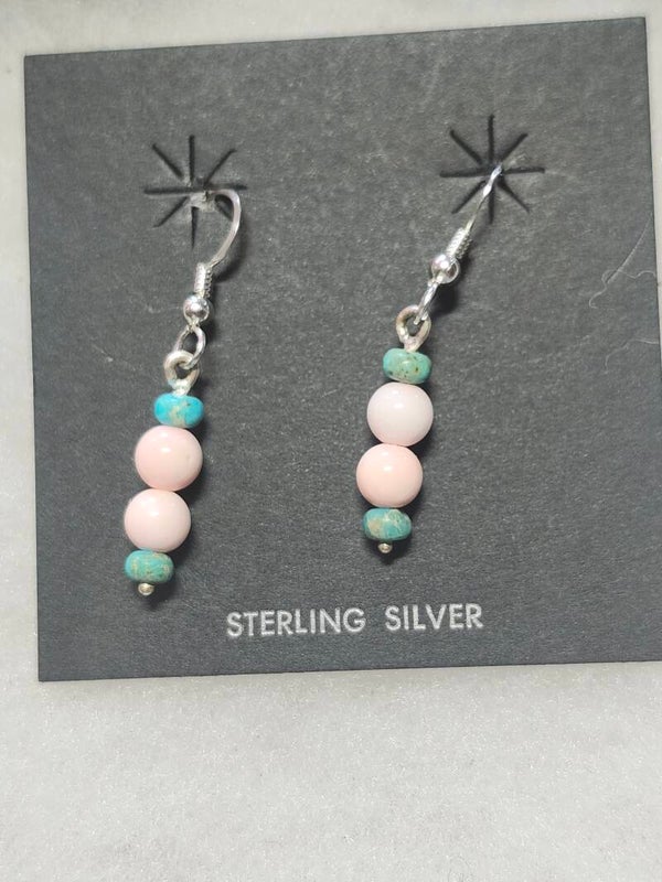 This Solid Sterling Silver Native Southwest earrings features beautiful Conch Shell as the main focal point, with Turquoise. The earrings are handcrafted with eco friendly solid sterling silver with natural gemstones in a Southwestern style, making it a unique and ethnic-inspired piece of jewelry. The jewelry is created using a plasma welder, which ensures a secure weld. The combination of natural turquoise stone, silver metal accents give these earrings a Western and Bohemian flair, perfect for adding a touch of ethnic-inspired style to any outfit.