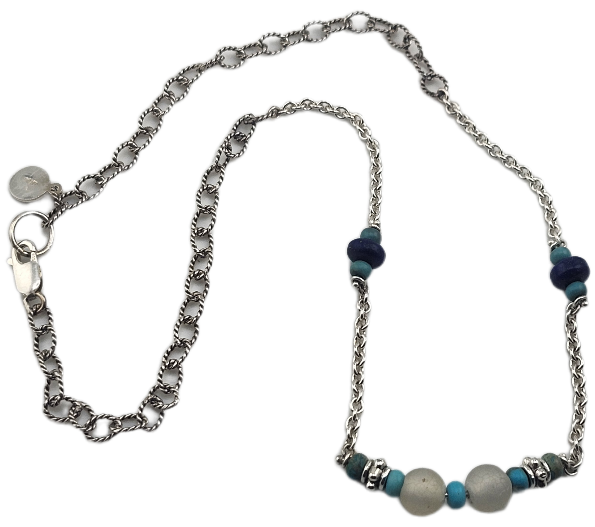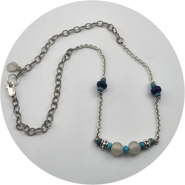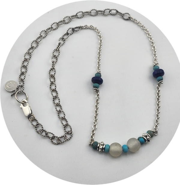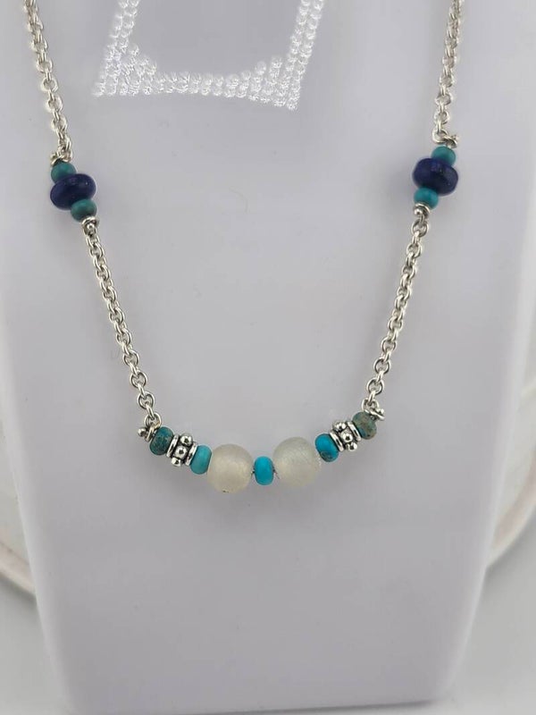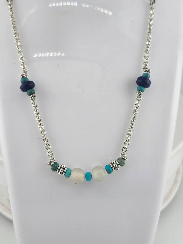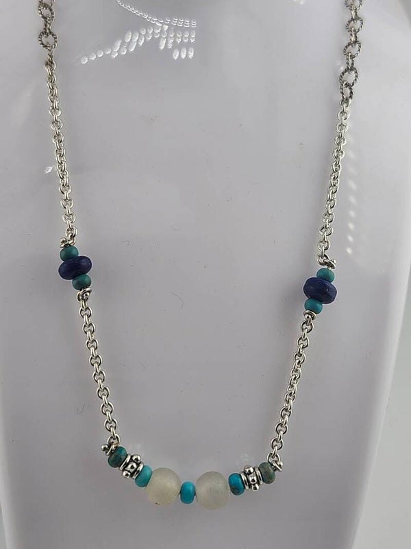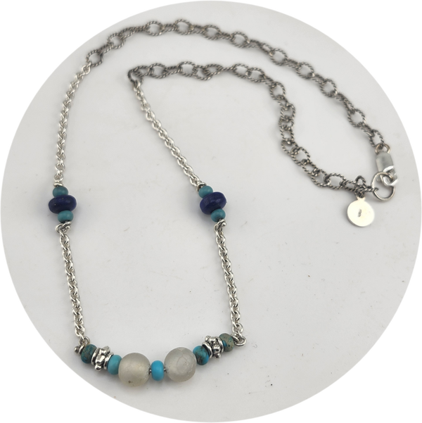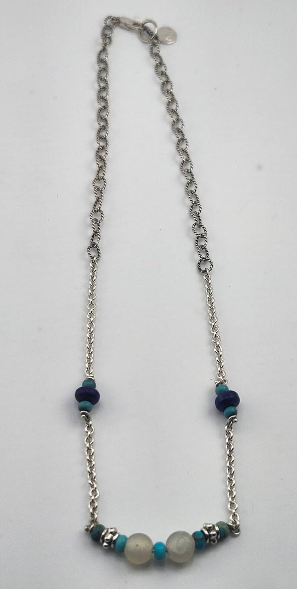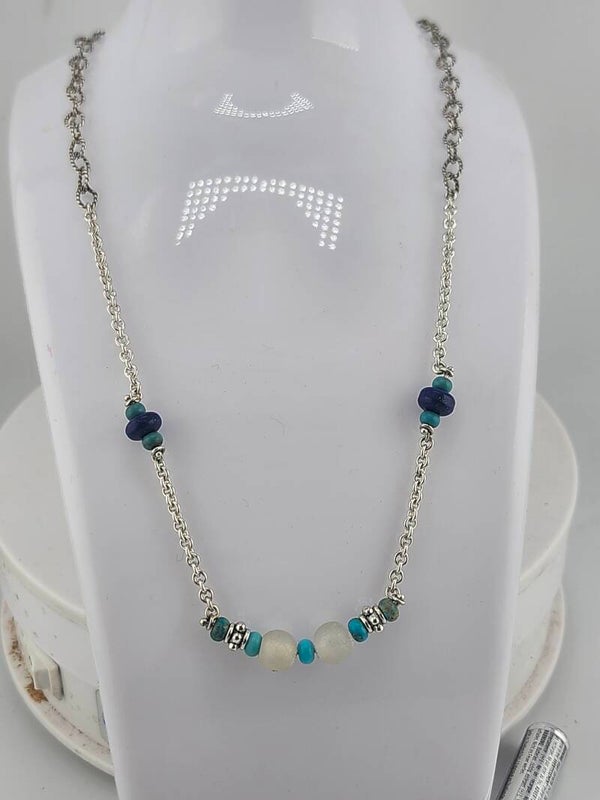 Turquoise & Lapis bead Sterling Silver Chain Necklace